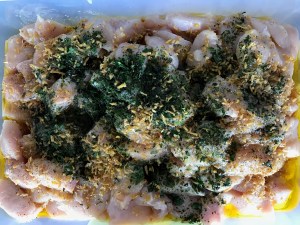 Chicken Skewers with lemon, garlic, ginger and rosemary.