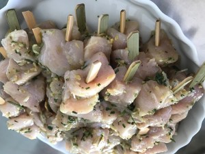 Chicken Skewers with lemon, garlic, ginger and rosemary.