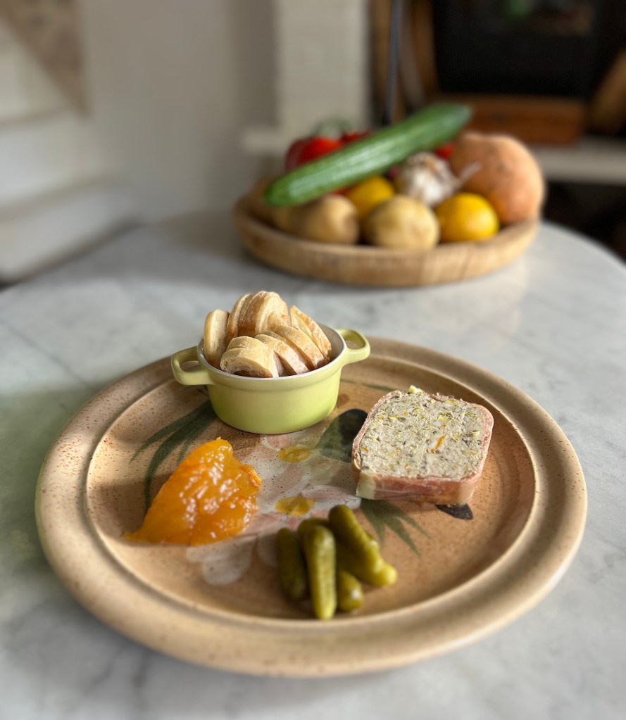 As the seasons change and the weather hots up (in France),  gatherings become more leisurely, longer and a little more indulgent. There’s something special about sharing a delicious meal with friends, and that’s where this Pork and Veal Terrine recipe shines. This elegant dish is perfect for long lunches and entertaining friends, and its rich flavours and tender texture are sure to impress. If you’re not a fan of pork you can substitute it for chicken.